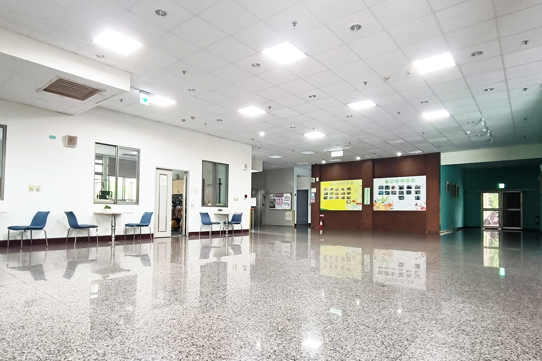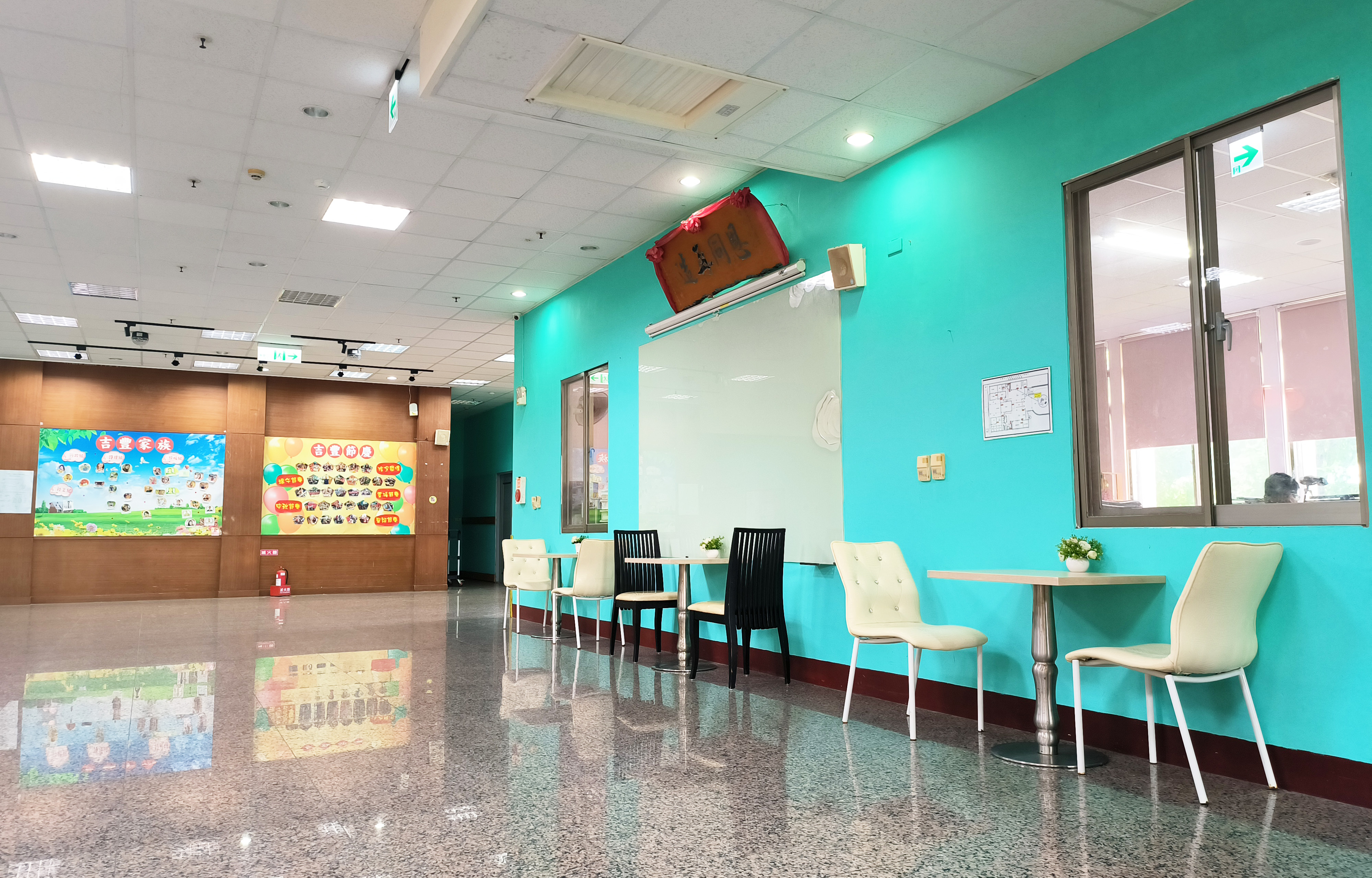 明亮而整潔的走道空間,透過細心規劃的無障礙設計,展現對行動安全與生活便利的周到考量。扶手沿牆延伸,穩定而可靠,為日常行走提供安心的支撐;地面材質溫潤防滑,讓每一步都更加從容無憂。 牆面上溫暖的佈告與生活照片,記錄著點滴日常與珍貴回憶,為原本功能性的空間注入情感與故事。一旁的綠意植栽靜靜陪伴,使行走其間不僅是移動,更是一段舒心的過程。 這裡不只是通往各個空間的動線,更是一條被細心守護的安心之路——在安全、關懷與尊重之中,陪伴長者自在前行,走過每一天的平穩日常。
