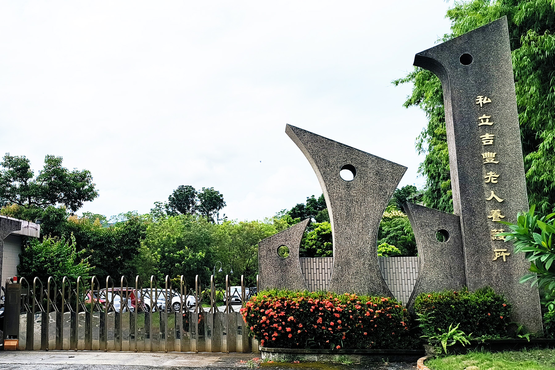 靜立於綠蔭之間的入口地標,以沉穩的灰色石材勾勒出向上舒展的線條,如同守望的身影,低調而堅定。錯落有致的造型在光影映照下展現層次美感,象徵守護、關懷與歲月累積的溫度。 石碑上的金色字跡,在自然光中閃耀出溫潤光澤,傳遞出對生命的尊重與承諾。周圍綠樹環抱、花叢點綴,為嚴謹的建築語彙注入柔和與生機,使整體空間在莊重之中,流露安定而親切的氣息。 這裡不只是園區的入口,更是一段安心旅程的起點,靜靜迎接每一位到訪者,走入一處被細心守護的溫暖天地。