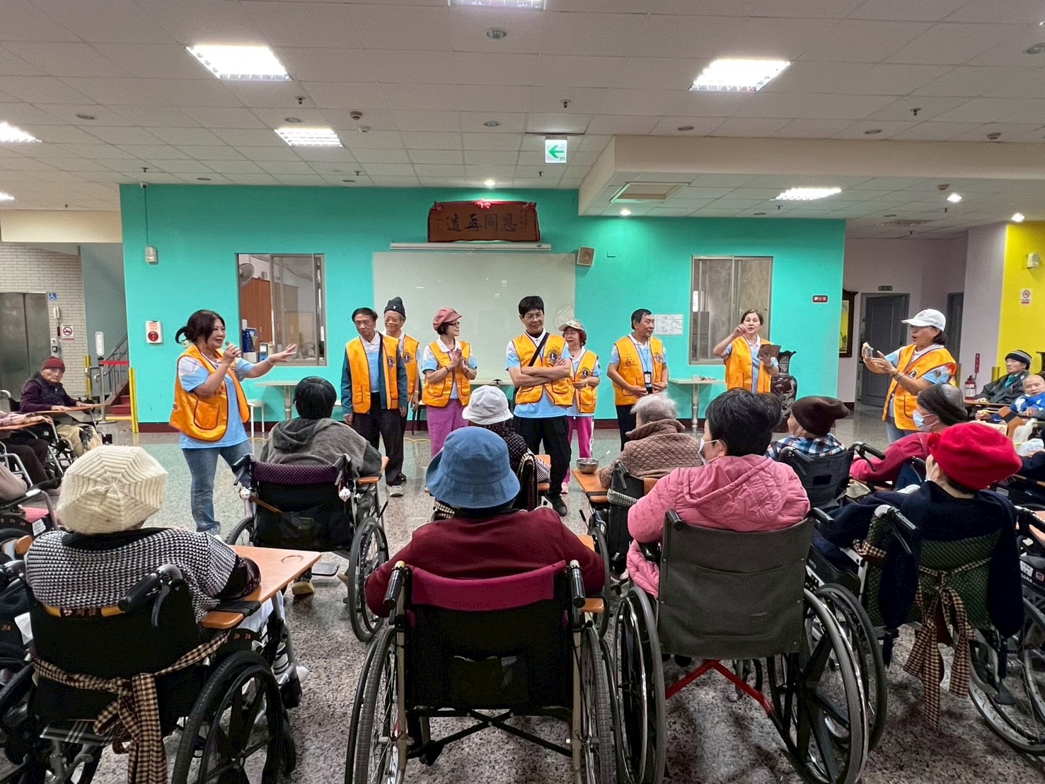 志工們陪伴長輩唱歌、拍手、笑聲不斷,旋律在院內流淌,