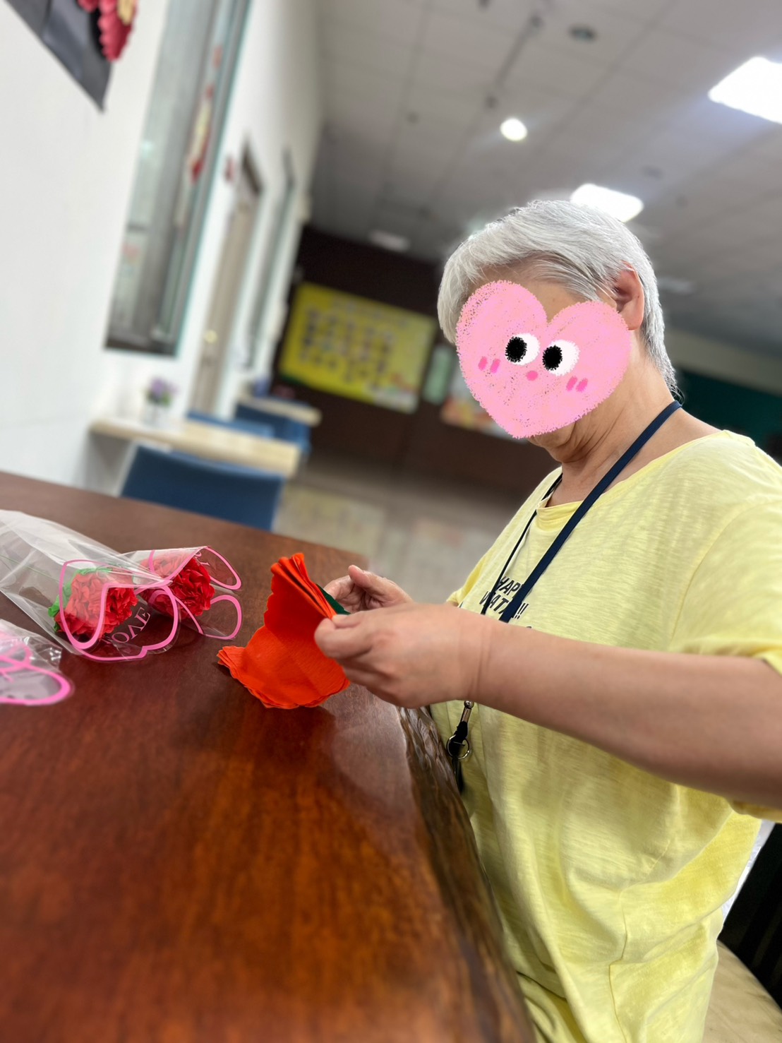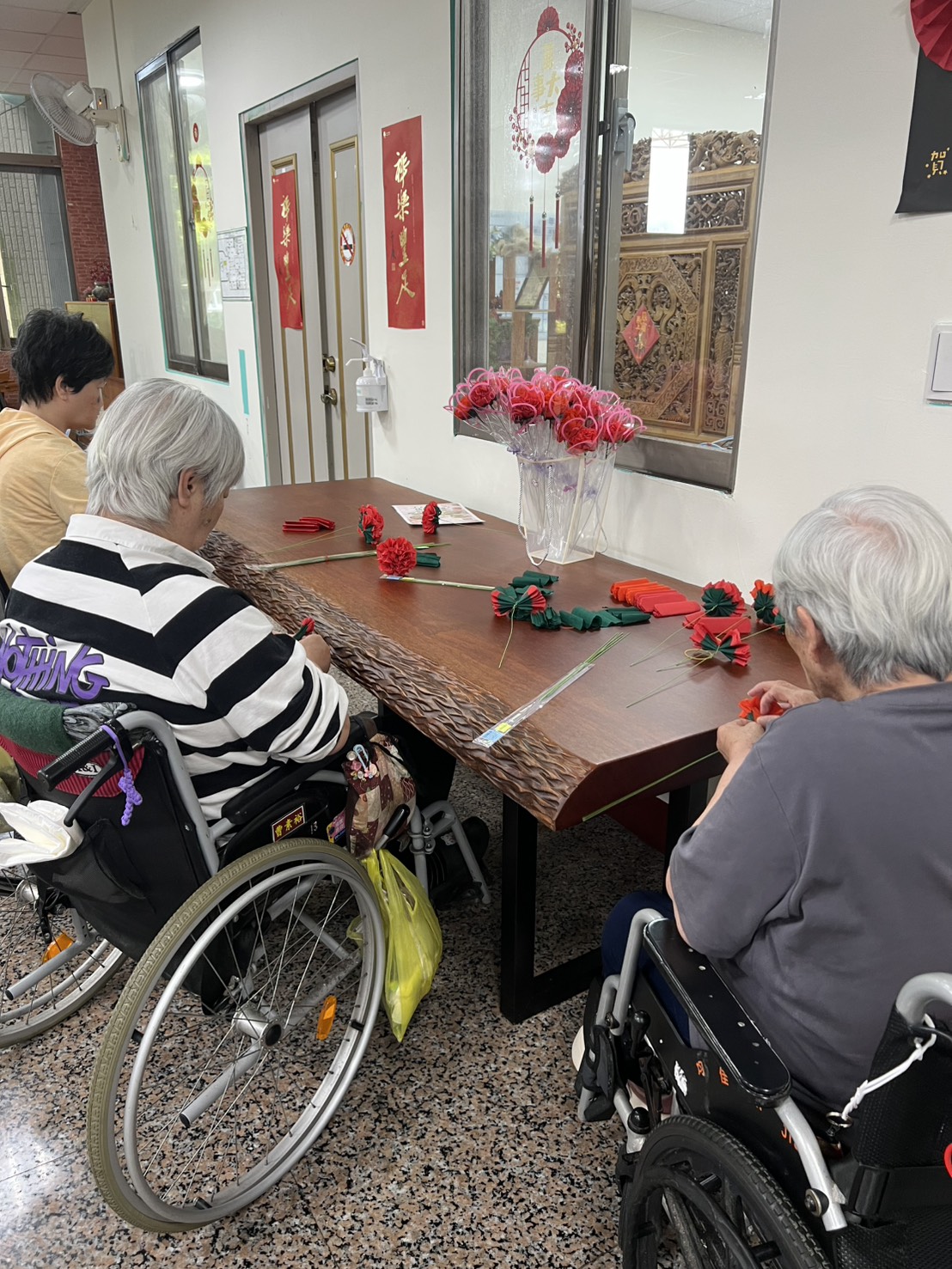 透過簡單卻富有意義的手作過程,住民不僅能體驗創作的成就感,也在與家屬、同仁的互動中,感受到被肯定與被需要的溫暖。對參與的家屬與同仁而言,一朵康乃馨,不只是祝福,更是一份陪伴與關懷的延續。